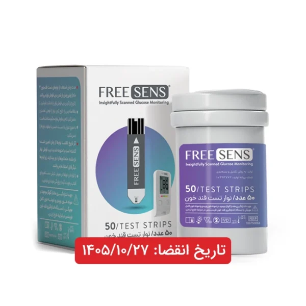 بسته 50 عددی نوار تست قند خون فریسنس مناسب برای استفاده در دستگاه تست قند خون FREESENS